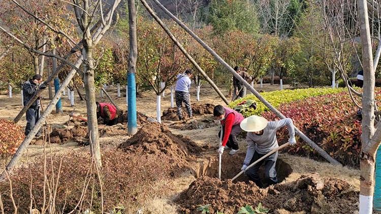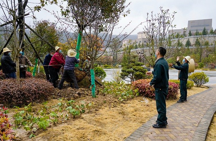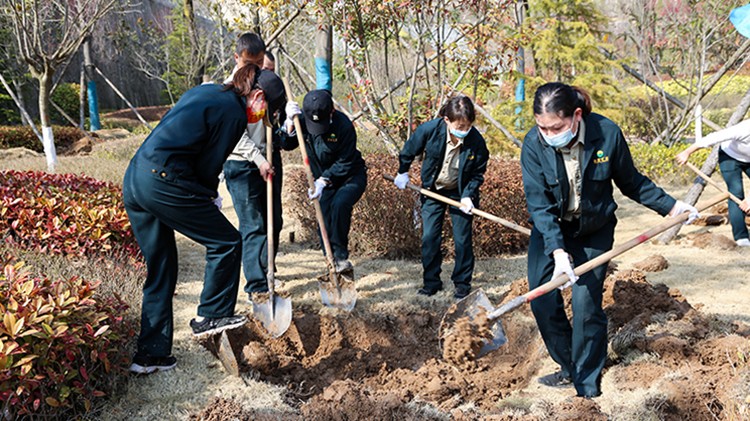 植樹(shù)活動(dòng)現(xiàn)場(chǎng),大家在做好疫情自我防護(hù)的同時(shí),干勁十足。他們?nèi)迦俗园l(fā)成組,相互配合、默契協(xié)作,或扶樹(shù)填坑、或揮鍬培土、或提桶澆水,每個(gè)環(huán)節(jié)銜接有序,合力栽下一棵棵樹(shù)苗,也共同播下疫散春來(lái)、華枝春滿的勃勃生機(jī)。經(jīng)過(guò)幾個(gè)小時(shí)的努力,一株株新栽種的冬青、石楠、廣玉蘭、雪松等樹(shù)木迎風(fēng)而立,為金徽股份增添了一片片濃濃春意。